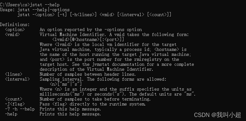 4. jstat jstat命令可以查看堆内存各部分的使用量,以及加载类的数量。