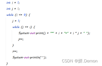 //首先写一个for循环,int i = 1,乘法表是一开始的,到九结束,那么i 就不能大于九,然后 i 自加一;