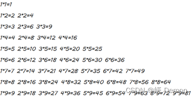 用循环来做九九乘法表是每个计算机语言的惯例了,一般都是用for循环来做的,但也有一些是特殊的,就好比while循环,如果是一些大佬级别的程序员,一看到用循环来做九九乘法表,那是一个行云流水,可是对一些刚入行的小白来说,那可是要头疼大半天才行。