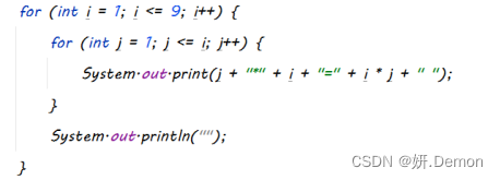 //再写一个for循环, int j = 1, j不能大于i ,可以等于i ,然后 j 自加一;