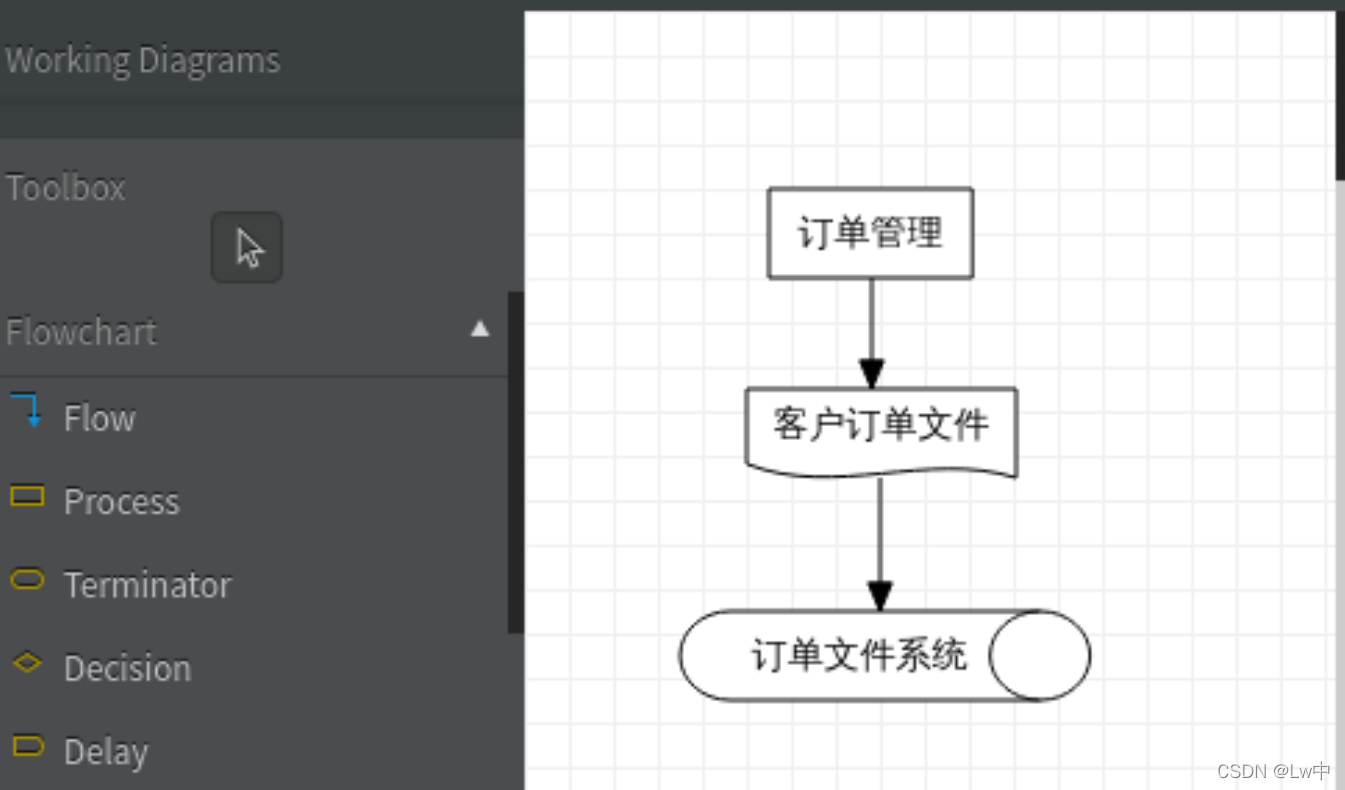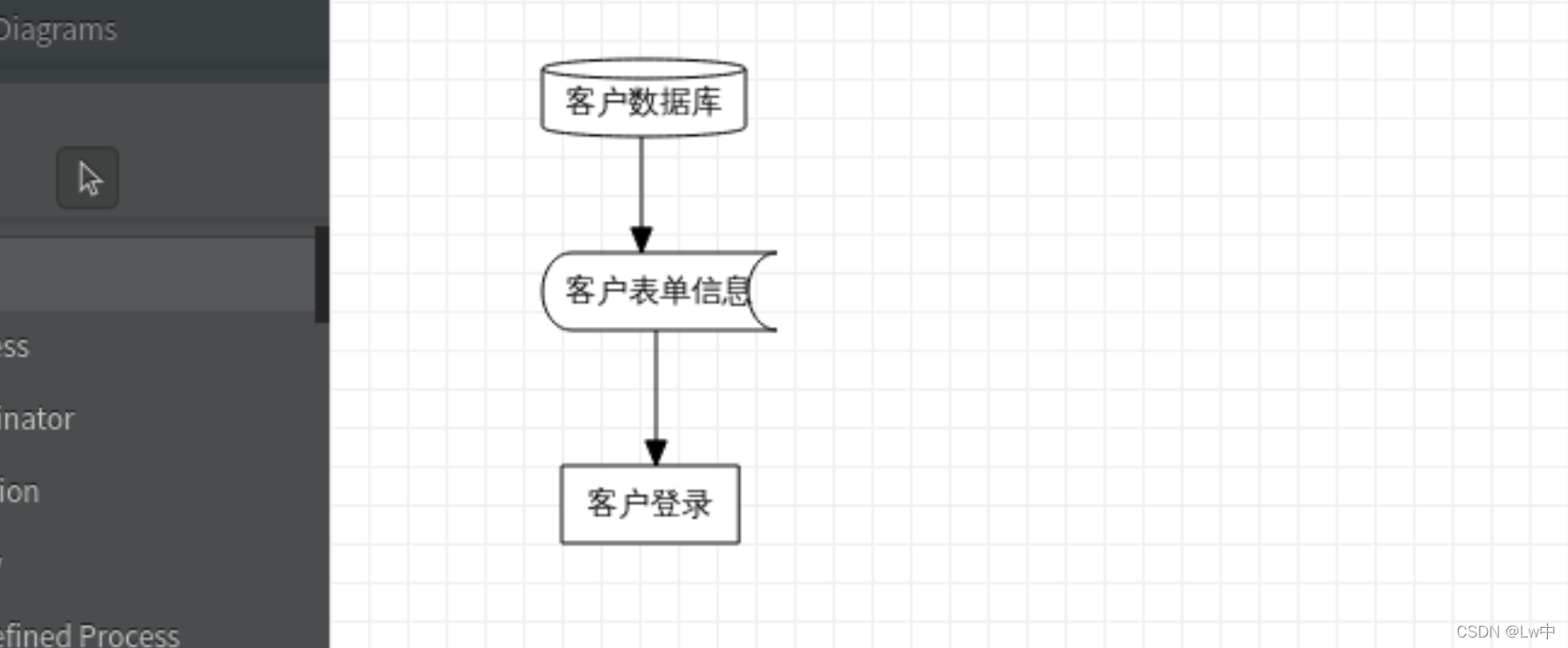 3:数据流:用来连接其他符号,指明数据流动方向(符号形状:→)