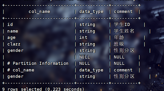 查看表的详细信息:DESC FORMATTED 表名;