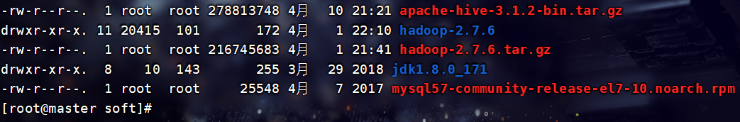 将hive-3.1.2上传到虚拟机中的/usr/local/soft目录下