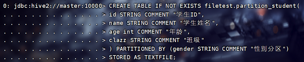 PARTITIONED BY:构建分区表,包括列名 数据类型 注释信息