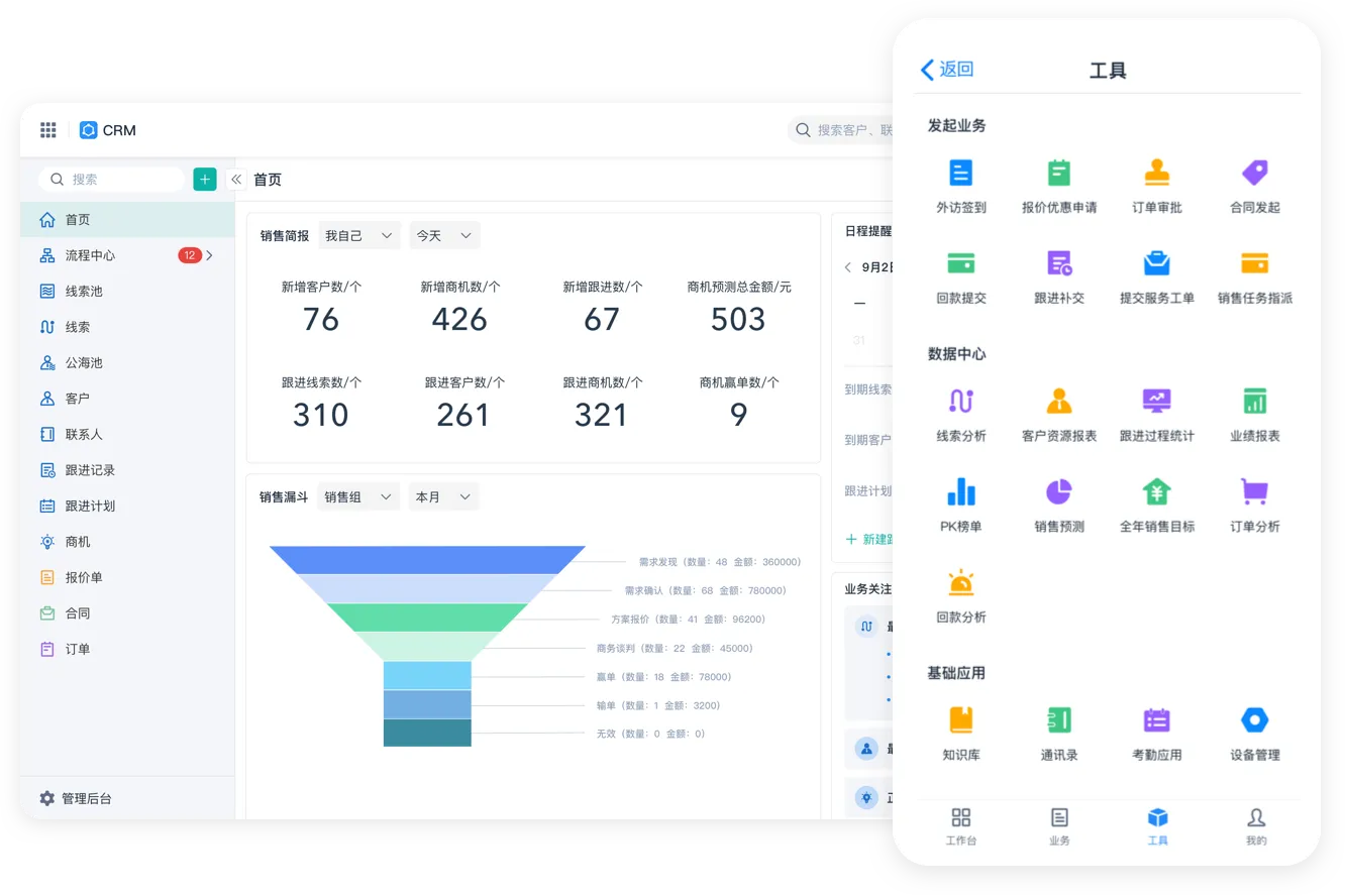 - 管理销售机会:企业需要建立客户数据库,包括客户的基本信息和交易记录等。通过分析这些数据,企业可以了解客户需求和行为,从而制定更有效的市场营销策略,提高销售额和市场份额。