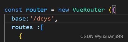 2.在路由配置文件中router下的index.js中添加base:'/xxxx',/xxxx为在Tomcat的webapps下创建的文件夹名称,要对应。