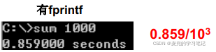 fprintf(IO操作)的耗时 / 计算指令耗时 = (0.859 / 10^3) / (0.015 / 10^7) = 5.7 * 10^5,也就是说IO操作的耗时远超过计算耗时