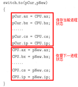 ① 当前进程的状态体现在CPU内部的各个寄存器中(包括通用寄存器和系统寄存器)
