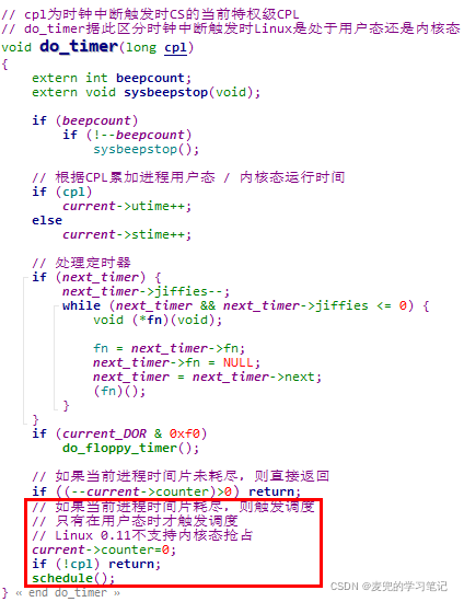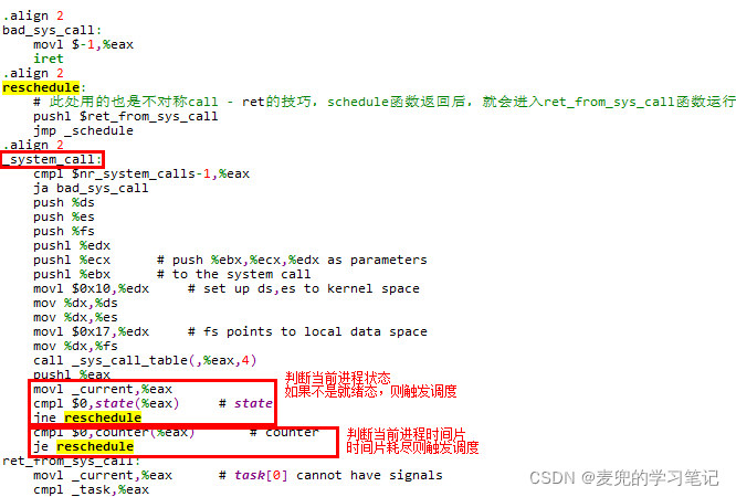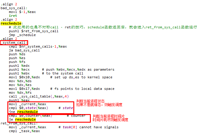 下面就以schedule函数的调用点,来分析Linux 0.11中进程切换的时机