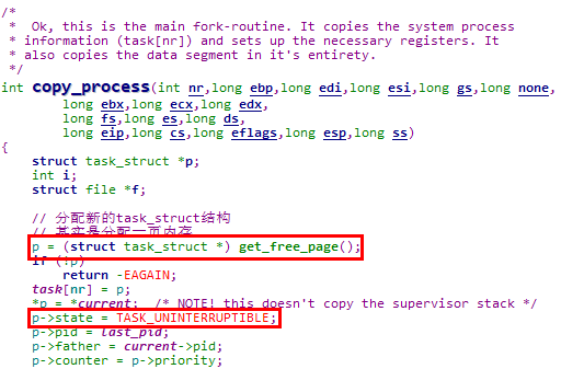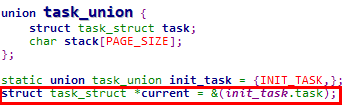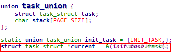 ③ 当在0号进程中调用fork函数创建1号进程时,由于此时current指针指向0号进程,所以1号进程拷贝的模板就是0号进程