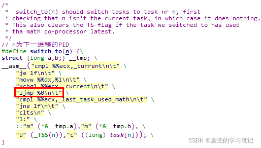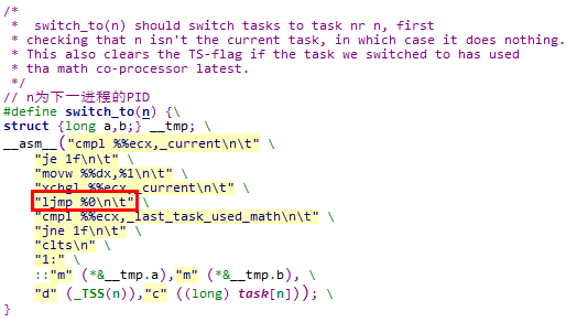 说明:由于进程切换操作需要精准控制寄存器,所以需要使用汇编语言实现