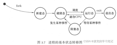 进程状态可以用于描述一个进程在其执行过程中的演化过程,即进程的生存周期。操作系统中进程的主要状态包括,