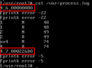 从验证结果可以看出,从新建进程5开始,3号文件描述符要么为空,要么不指向日志文件(日志文件file结构体指针值为0x000226B0)