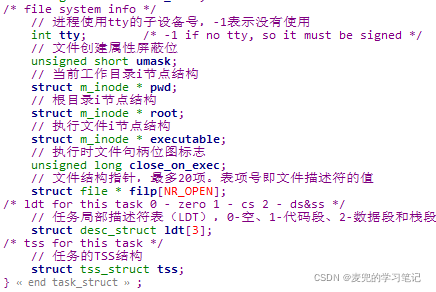 ① 在task_struct结构中,包含了tss_struct结构,该结构用于描述该进程的TSS段