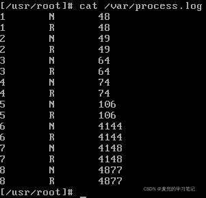 重新编译内核后运行虚拟机,可见进程日志文件已经生成