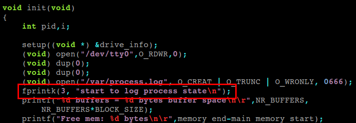 注意:这里的操作是错误的,因为init是在用户态执行的进程,无法调用fprintk函数