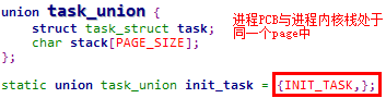 ② 0号进程的task_union是静态定义的,其他进程的task_union是动态分配的