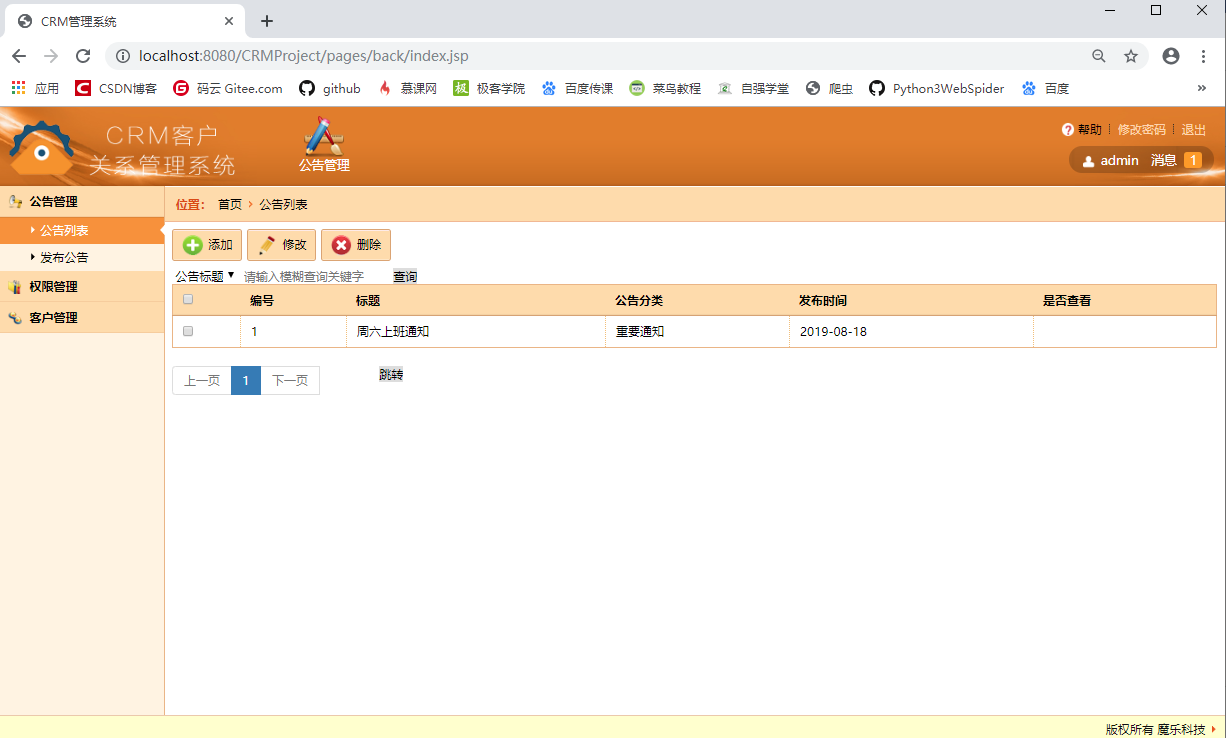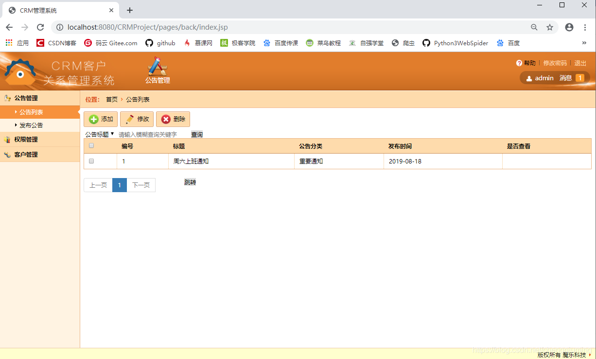 1 添加公告管理页面