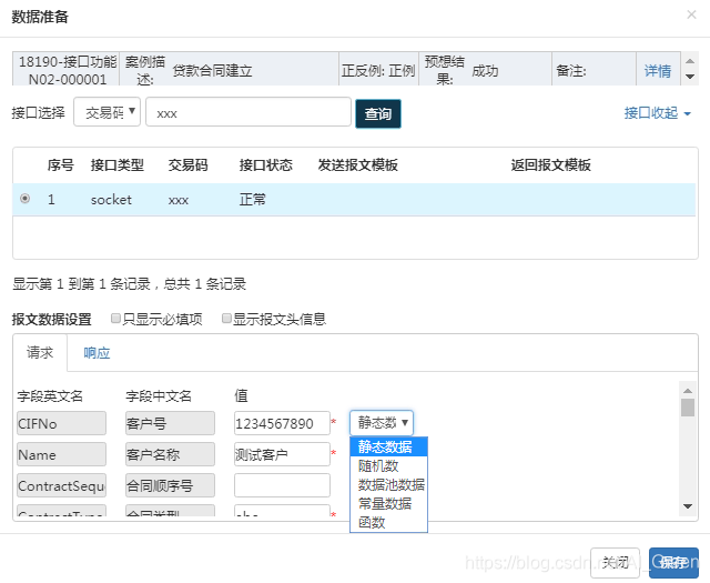 这些方法降低了测试数据准备的难度。同时,可根据接口文档实现可视化的发送报文自动拼装与返回报文自动解析,提供了灵活简易的测试案例检查点设置及检查点的自动判断功能,如下图4所示。