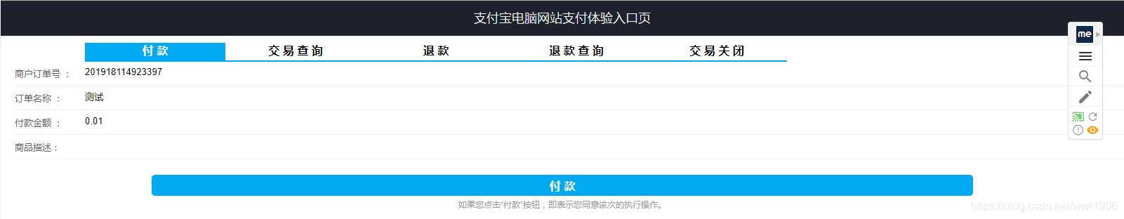 + "\"product_code\":\"FAST_INSTANT_TRADE_PAY\"}");