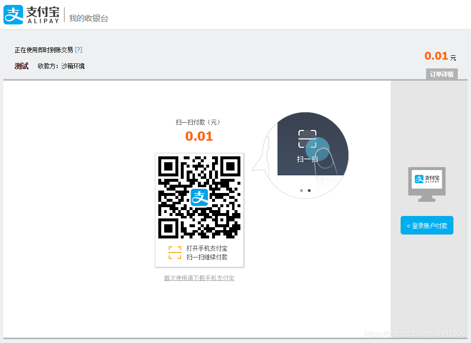 下载沙箱环境的支付宝APP可以扫码测试喔
