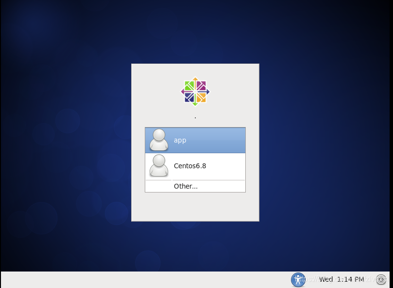 最近在centos系统中部署项目时,登录系统,系统停留在登录界面,鼠标成圆形,点击用户(或无用户,只有其他的选项)时,闪一下之后,没有任何反应,界面如下: