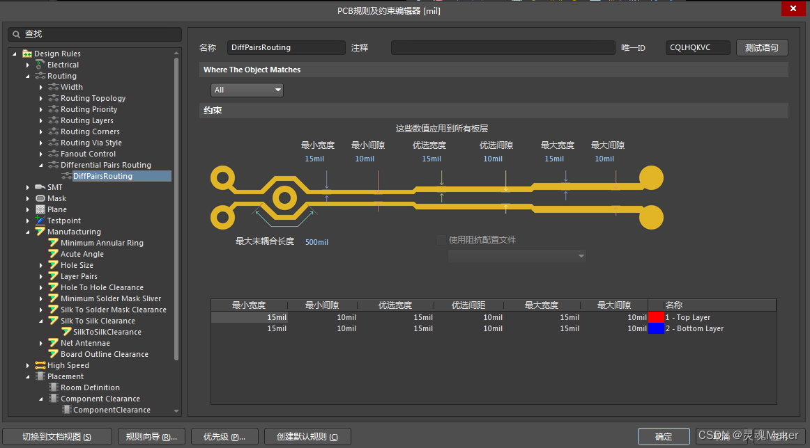 1.需要将原理图上需要差分布线的网络,分别设置成_N、_P结尾,注意前面要一样,