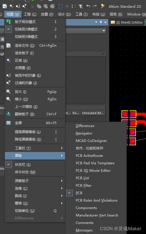 2.在PCB layout界面,打开PCB信息栏(在视图(V)--- 面板 中勾选),,