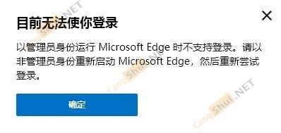 目前无法使你登录 以管理员身份运行 Microsoft Edge 时不支持登录。请以非管理员身份重新启动 Microsoft Edge,然后重新尝试登录。