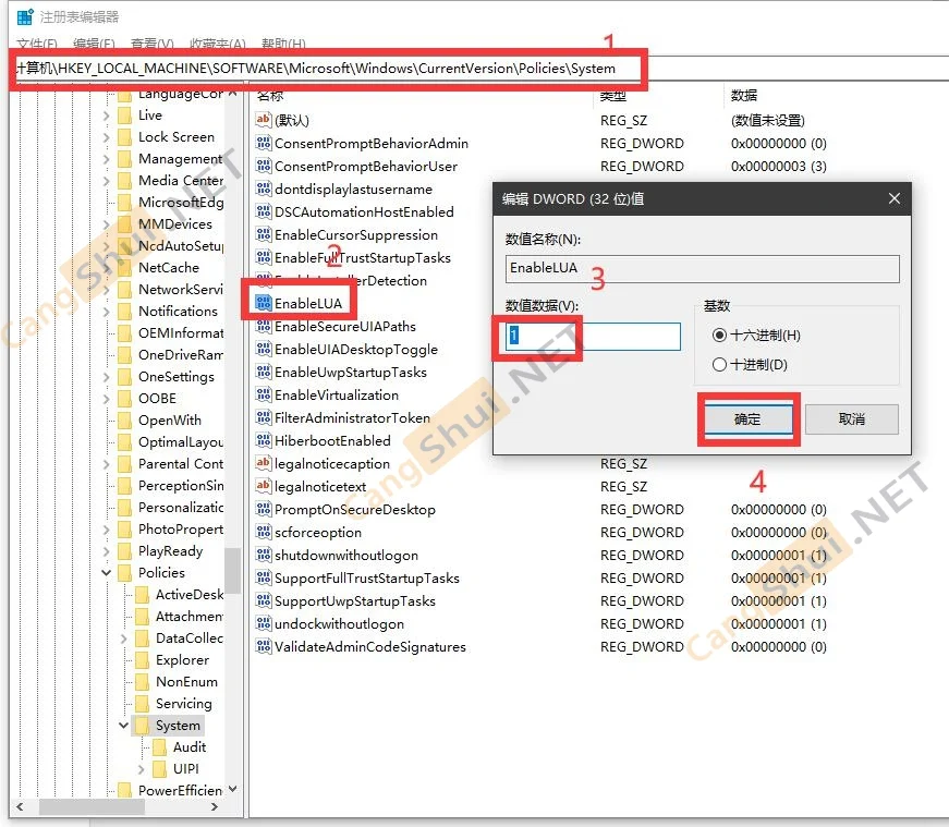 有人反馈,他们注册表中 EnableLUA 这项的数值本来就是1,改了无效!