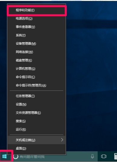 1.按下win+x,调出电脑右键的彩蛋功能,点击系统桌面左下角的【开始】,在开始菜单中点击【程序和功能】;