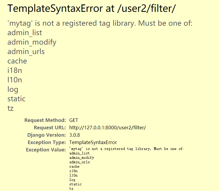 出现这个问题应该是自定义模板的标签和过滤器时出错的。