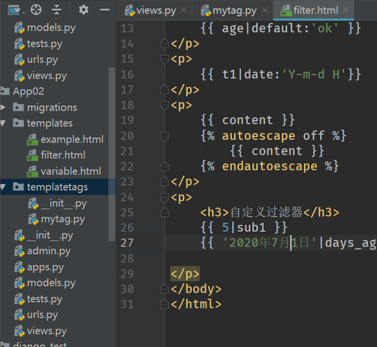 - 自定义的 tags 和 filters 会保存在模块名为