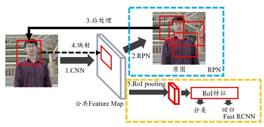 首先回答第一个问题,RPN的输入特征图就是图1中Faster RCNN的公共Feature Map,也称共享Feature Map,主要用以RPN和RoI Pooling共享;