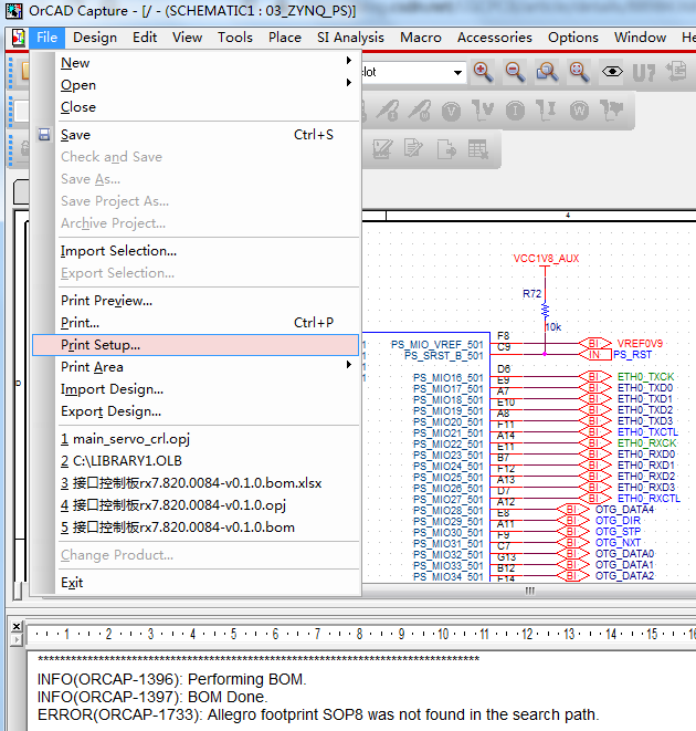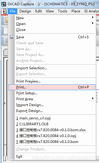 2,打开Cadence .DSN原理图文件,菜单栏File中选择Print setup