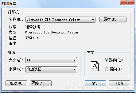3,打印设对话框中找到安装的虚拟打印机名称,设置打印纸张方向,大小