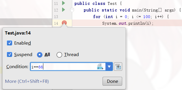 调试的时候,在循环里增加条件判断,可以极大的提高效率,心情也能愉悦。以下介绍下IDEA使用条件【Condition】断点的方法