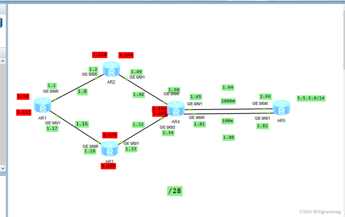 [r5-GigabitEthernet0/0/0]ip address 192.168.1.66 28