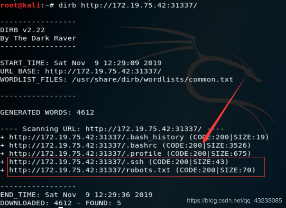 用dirb来探测,输入 dirb http://172.19.75.42:31337/