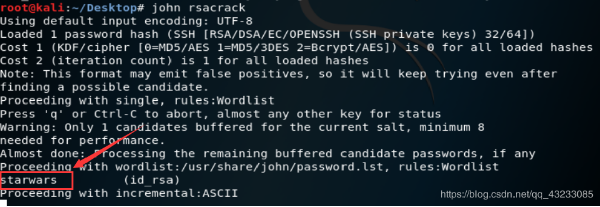 首先使用ssh2john将id_isa密钥信息转换成john可识别的信息
