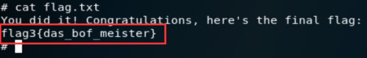 就得到了root权限啦,然后cat flag.txt就能得到第三个flag了。