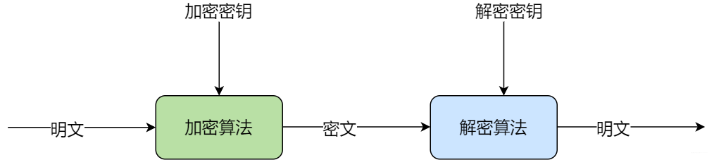 非对称加密是说使用一个加密算法和一个加密秘钥进行加密得到密文,但是在解密出明文的时候,其加解密密钥和加密密钥不同,通常加密密钥叫做公钥,解密密钥叫做私钥。