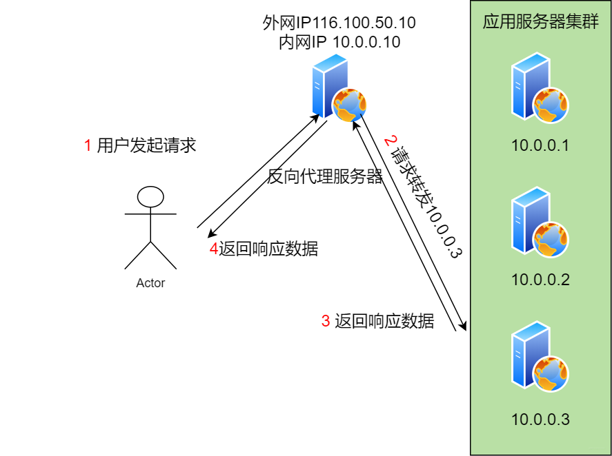这里典型的就是Nginx提供的反向代理和负载均衡功能。用户的请求直接叨叨反向代理服务器,服务器先看本地是缓存过,有直接返回,没有则发送给后台的应用服务器处理。