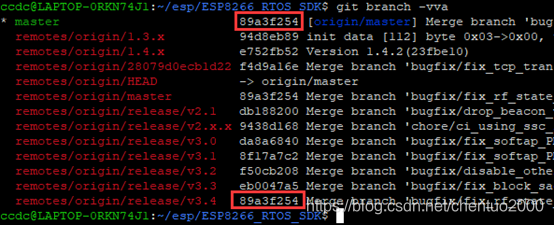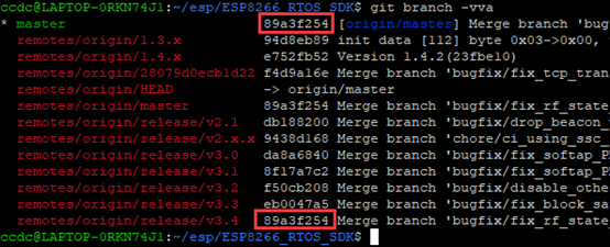 对比commit id 89a3f254可知本地ESP8266_RTOS_SDK版本是最新的v3.4版。