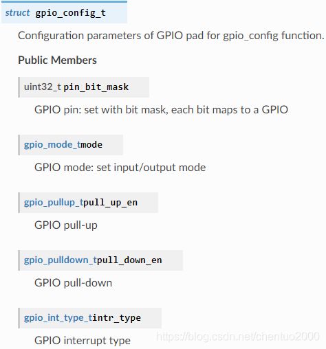 使用时先定义结构体gpio_config_t,再初始化结构体。