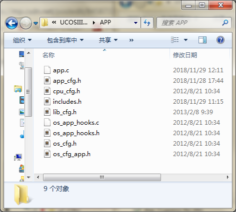 4、从UCOSIII源码中拷贝上述文件夹对应的文件到工程的文件夹中,uC_CPU等文件夹也一样