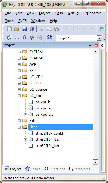 今天首先尝试了将UCOSIII移植到手上的开发板STM32F103RC,下面对移植过程做一个简单的记录和总结: