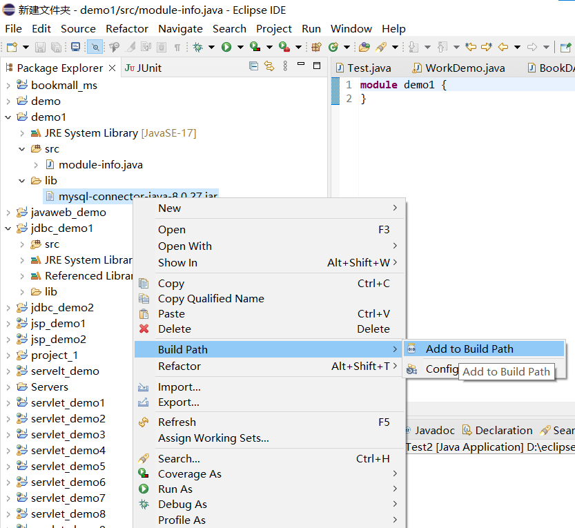在工程下创建一个lib文件夹,将 mysql-connector-java-8.0.27放置在此文件夹中,paste操作即可