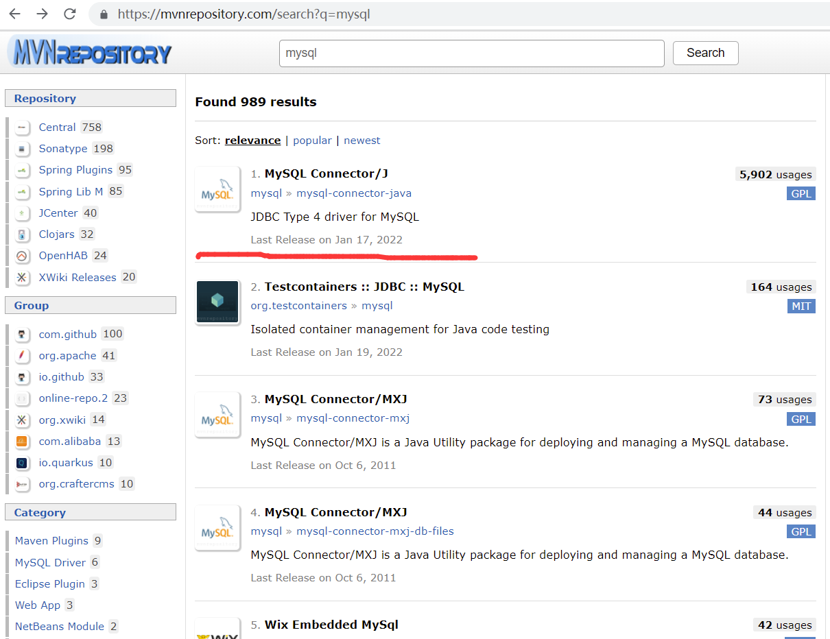 选择对应的版本(与之前下载MySQL的版本相匹配)