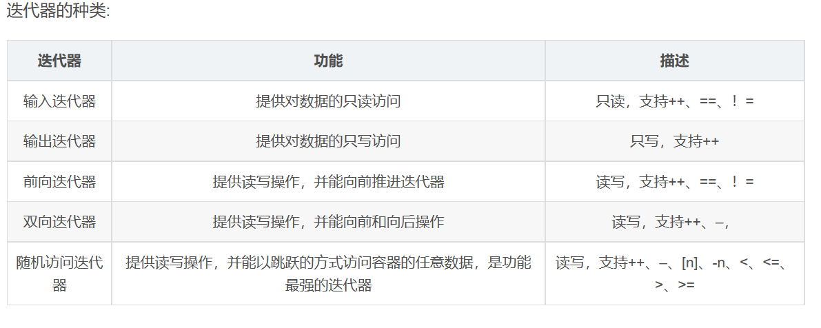迭代器(Iterator),提供了访问容器中对象的方法。例如,可以使用一对迭代器指定list或vector中的一定范围的对象。迭代器就如同一个指针。事实上,C++的指针也是一种迭代器。但是,迭代器也可以是那些定义了operator*()以及其他类似于指针的操作符地方法的类对象;